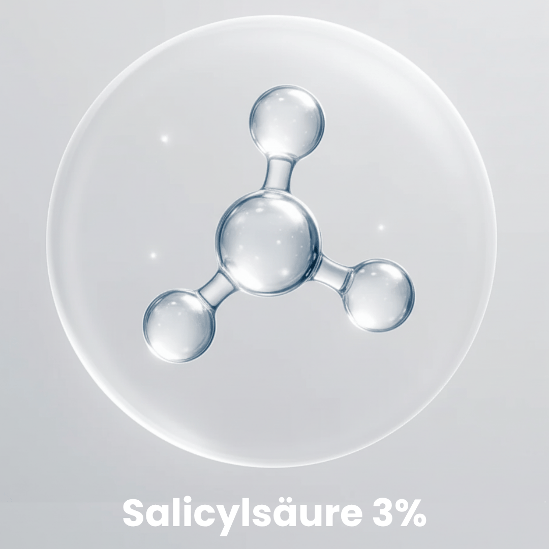 Salicylsäure ist bekannt dafür, Poren zu befreien, Schuppen zu lösen und Juckreiz zu lindern. Der Wirkstoff exfoliert sanft abgestorbene Hautzellen, reduziert Entzündungen und beugt der Bildung von Plaques vor.